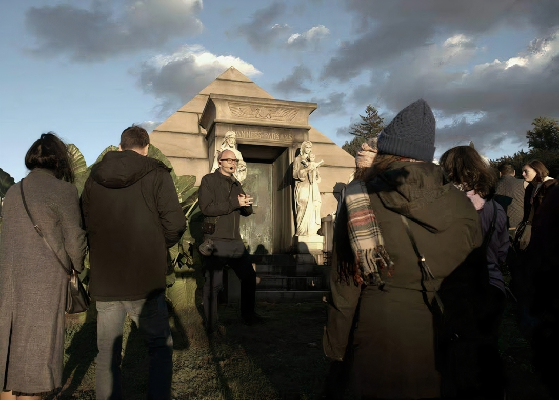 Step back in time and uncover the Victorian obsession with ancient Egypt right here at Green-Wood! Since its founding in 1838, the Cemetery has been a canvas for the era’s fascination with the enigmatic world of sandy dunes, scarabs, and the Pharaohs. Marvel at the array of Egyptian-inspired monuments and mausoleums that grace the grounds—from majestic pyramids and towering obelisks to intricate depictions of gods and sphinxes. Journey across Green-Wood and through history to delve into the enduring allure of the Egyptian afterlife and its influence on nineteenth-century memorials.